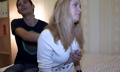 First time fuck - young couple, full hard bone plows tight pussy