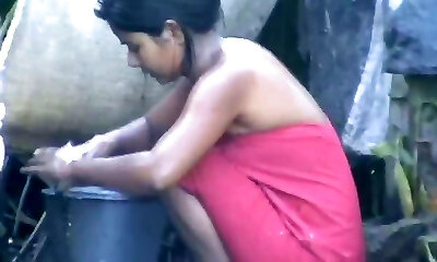 wow... amazing desi village gal bathing outside