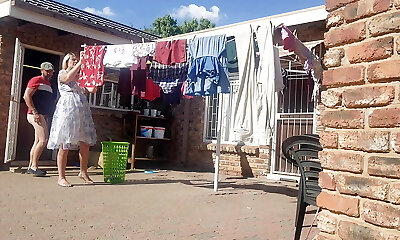 Since my spouse left for work, he called my neighbor to give us some affection outdoors