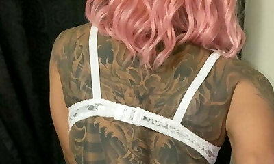 Gorgeous Milf in tattoos with pierced tongue and nipple. HOT.