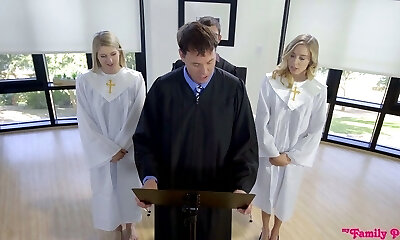 Sinful babe Haley Reed goes super-naughty on a hard pole in front of priest