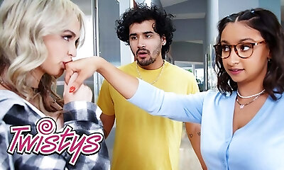 TWISTYS - Lilly Bell Tosses Her BF Outside To Show Hailey Rose How Good Are Her Gobbling Skills