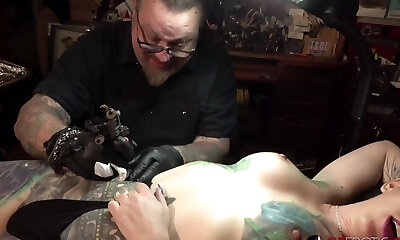 Tattooed Tattiana pleases a sugary-sweet pecker