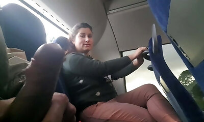 Voyeur seduces Milf to Gargle&Jerk his Dick in Bus